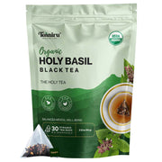 The ingredients of Holy Basil Tea include black tea leaves and holy basil