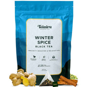 Winter tea is a blend of cardamom, ginger bits, cinnamon, and black tea with the natural flavors of apple, orange, and vanilla. It gives a warm spicy taste and offers several health benefits like relaxation and boosting immunity.